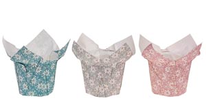 Kvetináč vyrobený z vodotesného kraftového papiera s kvetinovým motívom.