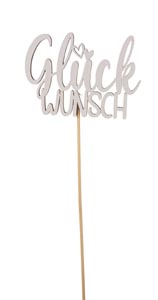 211407 Drevený zápich 'Glückwunsch', biely, 9, 5 x 7 - 20 cm