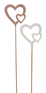 211500 Drevené srdiečko, zápich, prírodný/biely, ø 6 x 25 cm