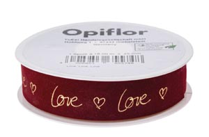 Zamatová stuha 'Love', červená, 25 mm x 18 m, 1 ks