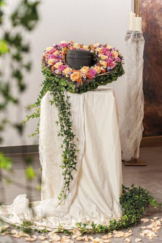 Aranžovacia hmota na živé kvety Donna, srdce, 51 x 52 x 5, 5 cm, otvor pre urnu 24 cm