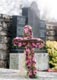 Stabilný drevený základ, masívny stojan. Kríž s drotenou mriežkou pre lepšie pripevnenie kvetov.