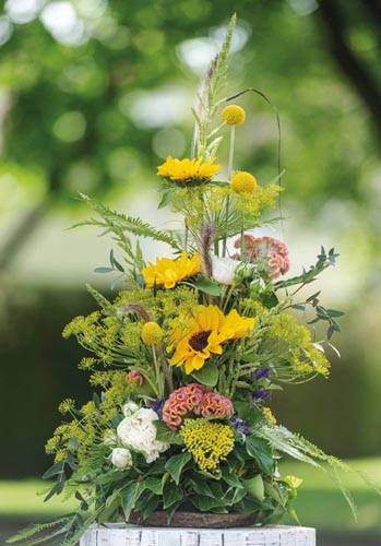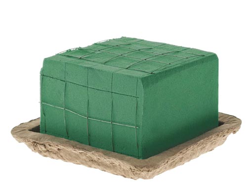 Aranžovacia hmota v Biodur miske, plne kompostovateľná, vo veľkosti 1/2 tehly s drôtovou mriežkou, vodeodolná. Vhodná pre použitie na cintorínoch.