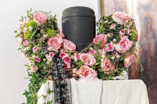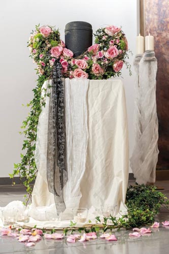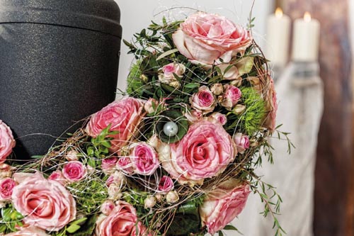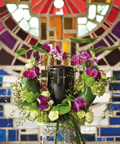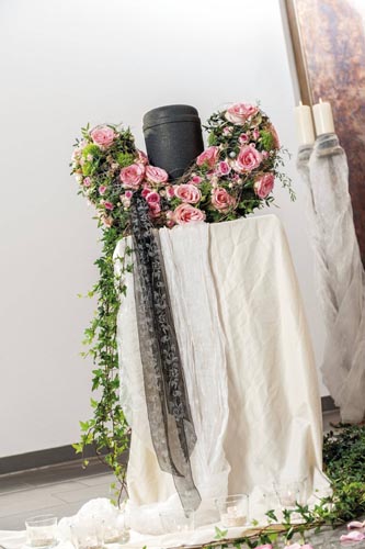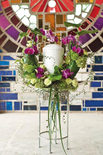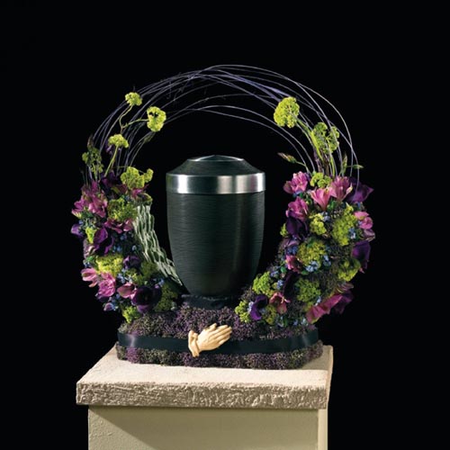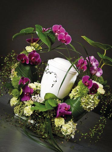 Aranžovacia hmota na živé kvety k urnám. Rôzne variácie dekorovania. 100% kompostovateľné v drvenej forme. Aranžovaciu hmotu treba položiť do vody, aby nasiakla vodou, (nikdy nie ponoriť) potom len rubovú stranu zavlažovať. Priestor pre urnu cca 16 cm, základ: 30 cm