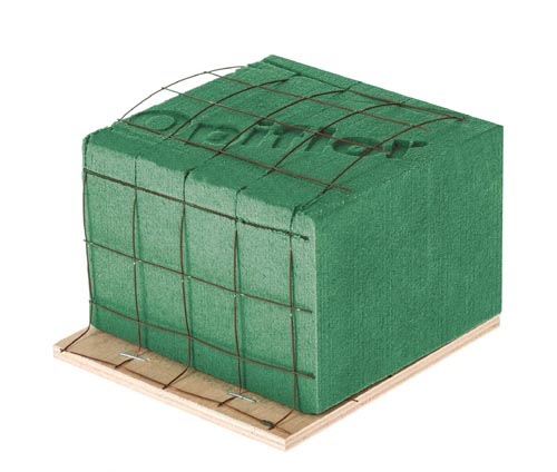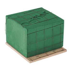 Najoblúbenejšia Aranžovacia hmota pre živé a suché kvety, vo veľkosti 1/2 tehla. S drôtovým obalom, na drevenom základe. Ľahko sa prenáša, praktickým okrajom na lepšie uchopenie.