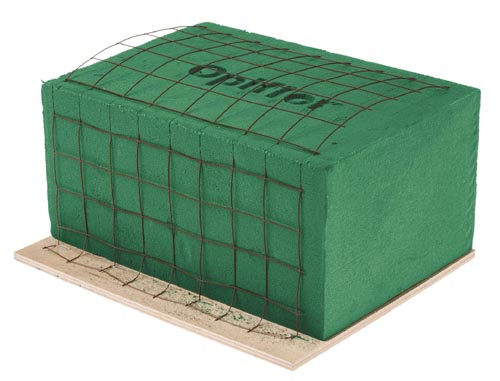 Najoblúbenejšia Aranžovacia hmota pre živé a suché kvety, extra veľkosti. S drôtovým obalom, na drevenom základe.