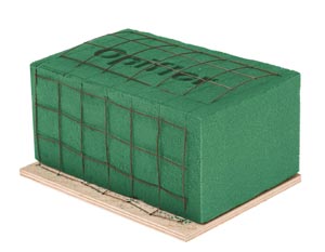 Najoblúbenejšia Aranžovacia hmota pre živé a suché kvety, vo veľkosti 3/4 tehla. S drôtovým obalom, na drevenom základe. Praktická drevená rúčka 11 cm, ľahko sa prenáša, predvrtané otvory pre ľahkú montáž.