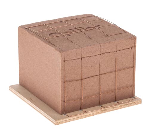 Najoblúbenejšia aranžovacia hmota pre živé a suché kvety, vo veľkosti 3/4 tehla. S drôtovým obalom, na drevenom základe. Praktická drevená rúčka 11 cm, ľahko sa prenáša, predvrtané otvory pre ľahkú montáž.