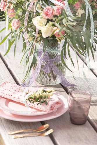 Čipkovaná stuha, orgován, 25 mm x 15 m