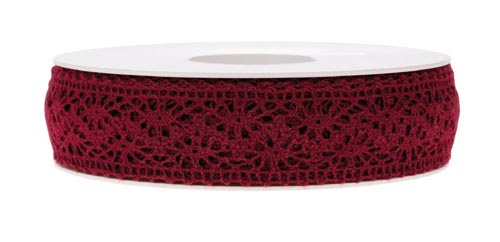 155493 Čipkovaná stuha, bordó, 25 mm x 15 m