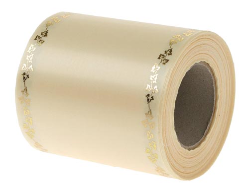 Saténová stuha na vence, šampanská, so zlatým lemom, 100 mm x 25 m