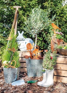 211015 Kovová krhla a vedierko, zápich, pastelové farby