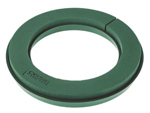 Vnútorný rozmer ø 30 cm. Aranžovacia hmota na živé kvety, na plastovom základe, protišmykové bodky zabranujú posúvanie venca