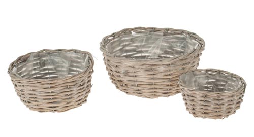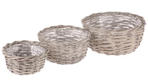 Prútený košík, sivý, Ø 15 x 8 cm, Ø 22 x 10 cm, Ø 25 x 12 cm