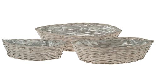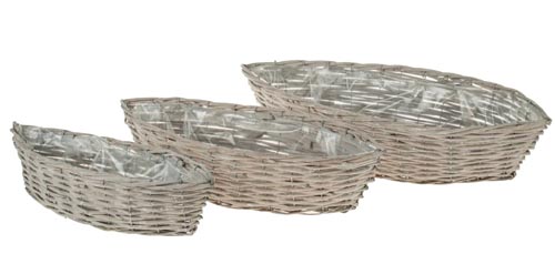 Prútený kvetináč loď, sivý, 44 x 15 x 11 cm, 53 x 21 x 13 cm, 61 x 24 x 14 cm
