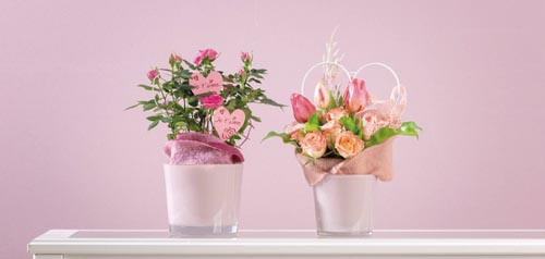 Sklenený kvetináč, ružový, ø 11, 5 x 11 cm
