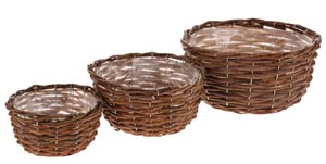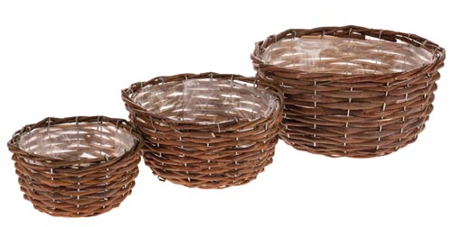 ø 15 x 8 cm, ø 22 x 10 cm, ø 25 x 12 cm, prútený košík s 2 uškami z vrby, vhodný na výsadbu, vystlaný fóliou
