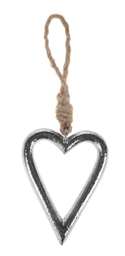 Kovové srdiečko závesné, strieborné, 6 x 8 cm