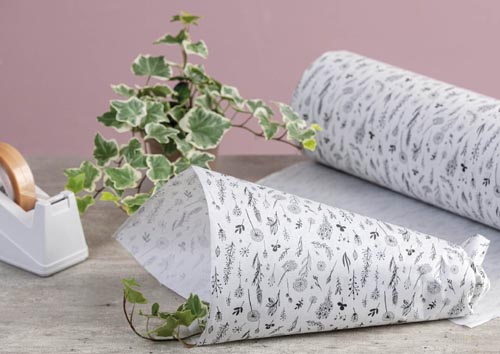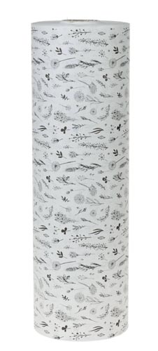 Hodvábny baliaci papier kvetinový, biely/čierny, 50 cm x 342 m, 6 kg