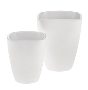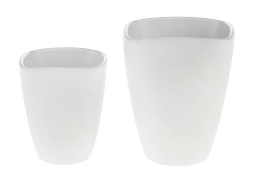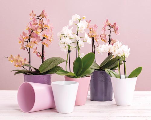 Štvorcový kvetináč na orchideu s matným povrchom a zaoblenými rohmi. S integrovanou keramickou podložkou na odtok prebytočnej vody.
