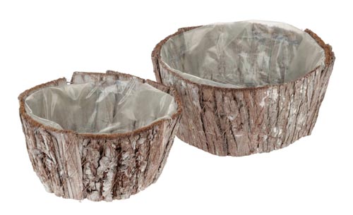 208672 Kvetináč z kôry, bielený, ø 18 x 9 cm, ø 22 x 10 cm