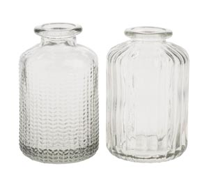 sklenená váza v tvare fľaše, s reliéfnym vzorom: drážkovaný a rybí, hrdlo cca. ø 2,5 cm