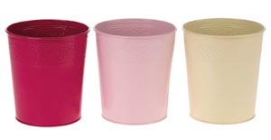 lakovaný plechový kvetináč, na hornom okraji s ornamentovým vzorom, z každej farby 8 ks