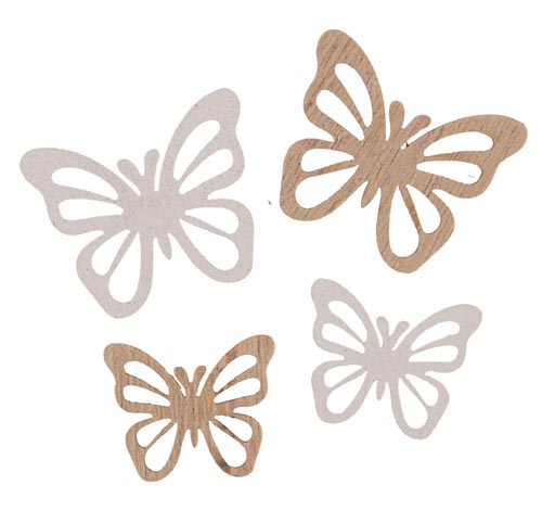 Drevený motýľ, biely a prírodný, 2, 8 x 0, 3 x 2, 3 cm, 24 ks