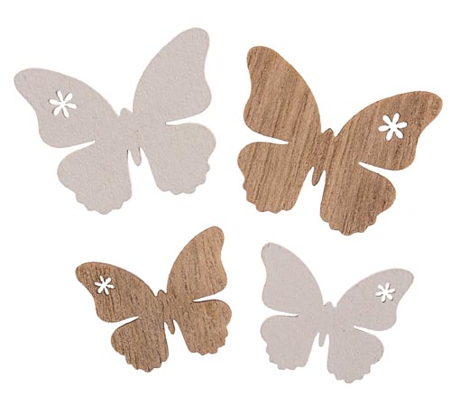 Drevený motýľ, biely a prírodný, 3, 4 x 0, 3 x 3, 9 cm, 24 ks
