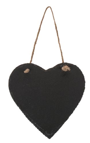 Srdiečko z prírodnej bridlice s jutovou šnúrou na zavesenie. Na srdiečko sa dá písať tabuľovou kriedou alebo kriedovými popisovačmi. Rýchlo a jednoducho utrite vlhkou handričkou.