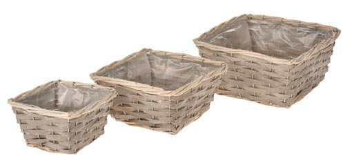 15 x 15 x 9 cm, 20 x 20 x 10 cm, 23 x 23 x 12cm, košík z dýhy, vystlaný fóliou