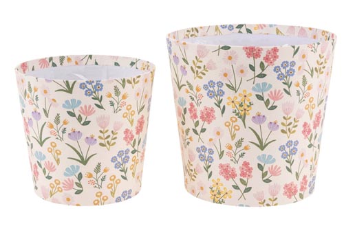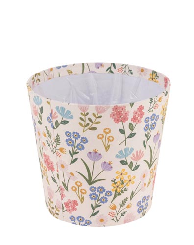 kvetináč vyrobený z kraftového papiera s kvetinovým vzorom, vystlaný fóliou