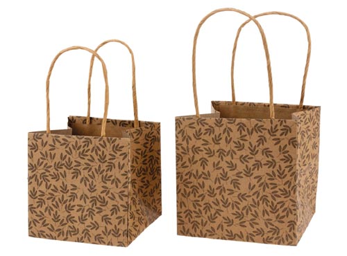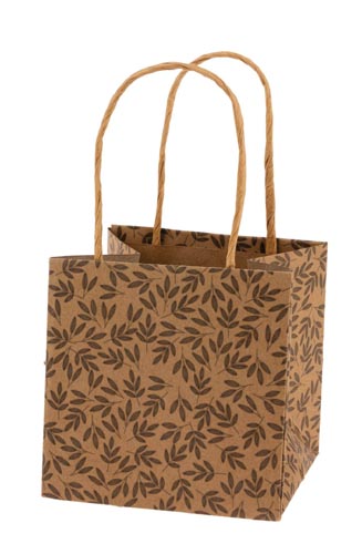 papierová taška z kraftového papiera, s kvetinovým motívom, s uškami, vystlaná fóliou
