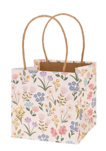 papierová taška z kraftového papiera, s kvetinovým motívom, s uškami, vystlaná fóliou