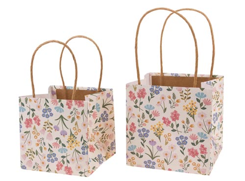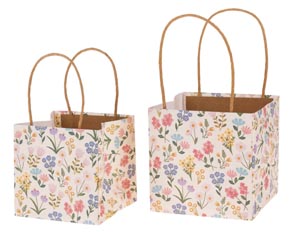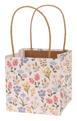 papierová taška z kraftového papiera, s kvetinovým motívom, s uškami, vystlaná fóliou