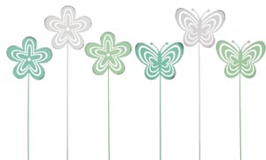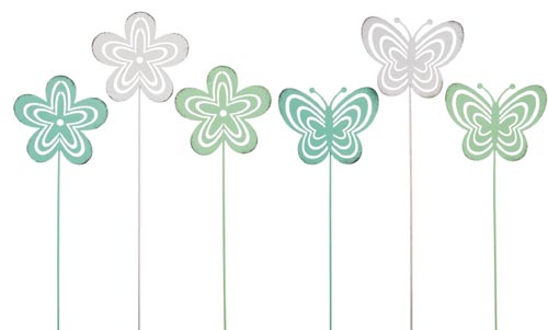 210942 Kovový motýľ a kvet, zápich, zelená a biela