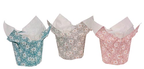 Kvetináč vyrobený z vodotesného kraftového papiera s kvetinovým motívom.