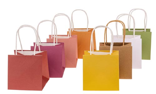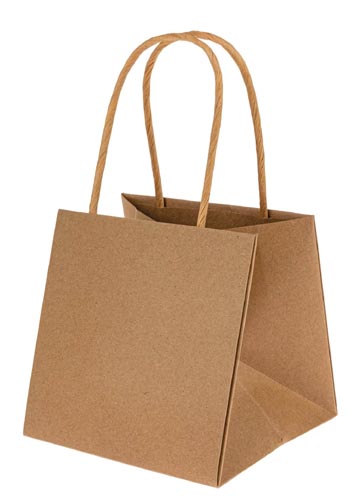 Papierová taška s rúčkami, prírodná, 10, 5 x 10, 5 x 10, 5 cm
