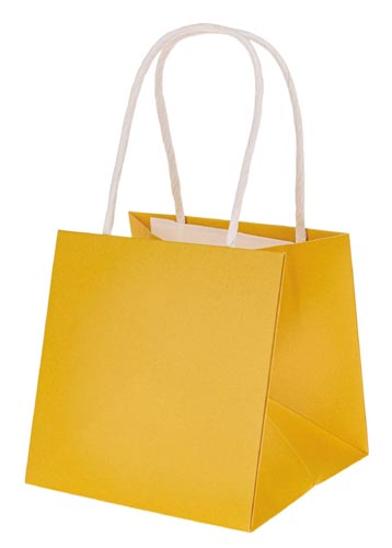 Papierová taška s rúčkami, žltá, 10, 5 x 10, 5 x 10, 5 cm