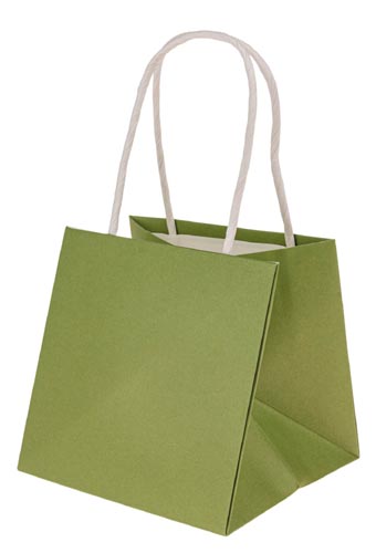 Papierová taška s rúčkami, zelená, 10, 5 x 10, 5 x 10, 5 cm