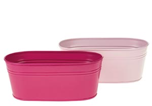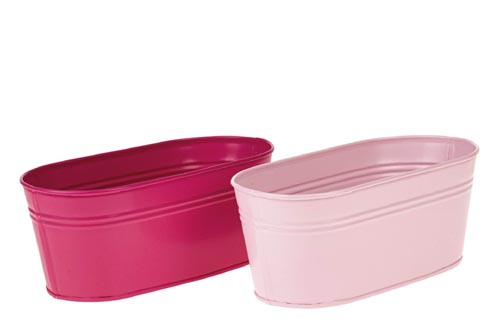 211311 Plechový kvetináč oválny, fuksiova, ružová, 22 x 11 x 9 cm