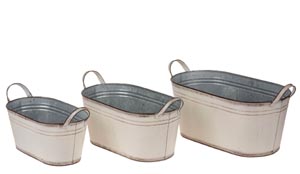 Plechový kvetináč oválny Jenni, krémový, 3 ks