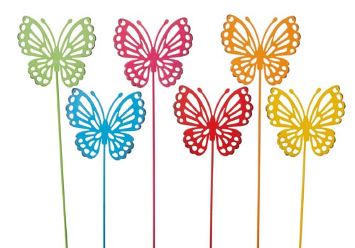 211347 Kovový zápich motýľ, farebný, 7 x 6 x 25 cm