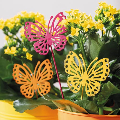 Kovový zápich motýľ, farebný, 7 x 6 x 25 cm