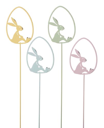 Rozmery: 5 x 7 - 28 cm. Kovový zápich zajačik vo vajci, 2 druhy.