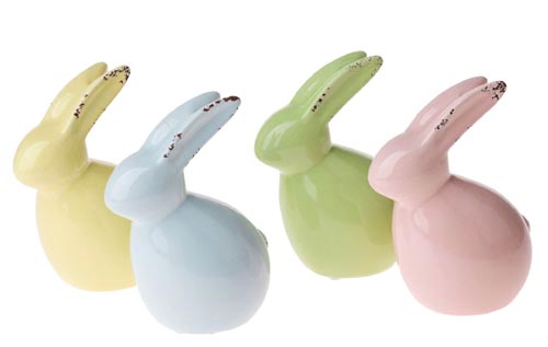 211362 Keramický zajačik, pastelové farby, 9, 5 x 7 x 13 cm