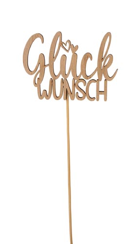 211408 Drevený zápich 'Glückwunsch', prírodný, 9, 5 x 7 - 20 cm