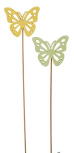 211498 Drevený motýľ, zápich, zelený/žltý, ø 6 x 25 cm