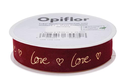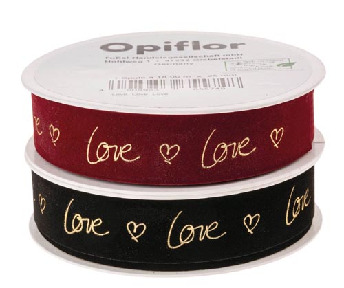 Zamatová stuha 'Love', červená, 25 mm x 18 m, 1 ks