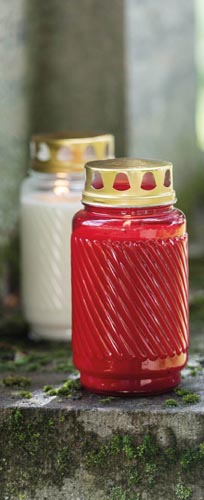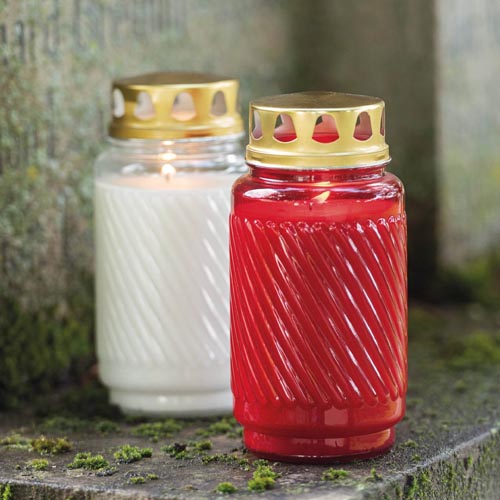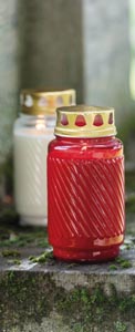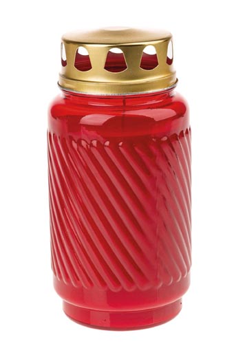 Kahanec vyrobený z textúrovaného skla so zlatým viečkom, doba horenia cca 100 hodín.